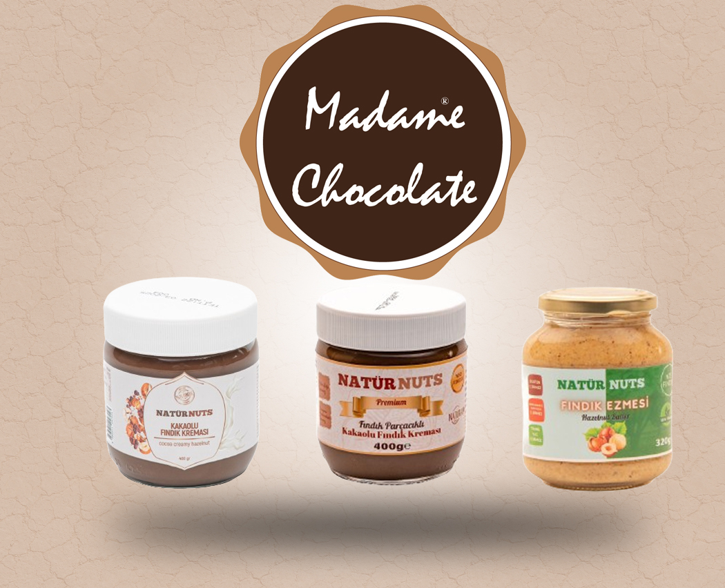 Fındık tutkunları için mükemmel bir lezzet serüveni... Fındık parçacıklı ve klasik kakaolu fındık kremalarımız ve harika fındık ezmemiz ile, damaklarda iz bırakan muhteşem bir lezzet Madame Chocolate tecrübesi ile Natür Nuts® ürünlerimizde sizlerle buluşuyor.